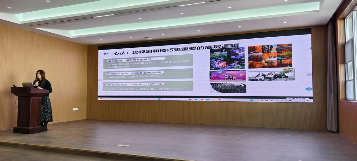 黄路遥校友(18级毕业生,现任中学物理教师)从大学生活自律与情感管理入手,鼓励新生突破“标准答案思维”,学会自我负责,经营“高质量的恋爱”,并注重形象管理与家庭关系和谐。