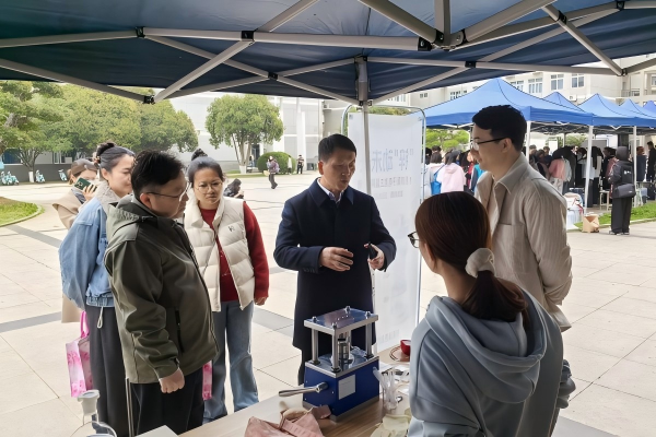 (本网讯)春樱烂漫,科学启智。3月19日,学校2026年第二届“樱花有约”科普展在行知广场如期举行。来自省内22所中小学的50余名校长及科学教师代表齐聚校园,共话科普教育协同发展。为充分做好材料科学与能源工程学院科普资源与省内中小学科学教育需求的精准对接,切实服务好基础教育发展。由副院长李杰牵头组织师生团队携四大特色科普项目精彩亮相。以生动有趣的互动形式,为参观校长和师生们呈现了一场别开生面的材料科学体验之旅,将高校科普资源精准送达中小学教育一线。